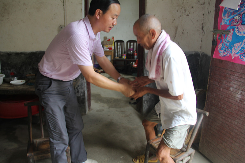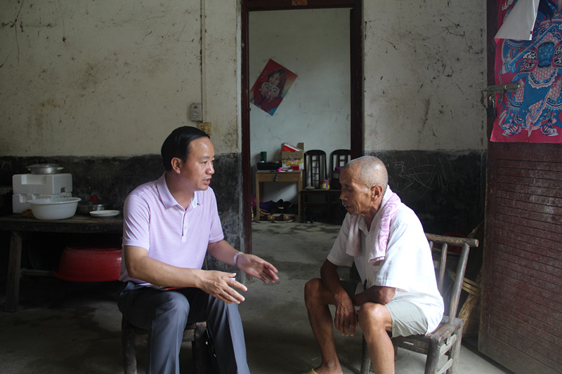 胡太禄一行向该村村民委员会详细了解了扶贫对象的基本情况和该村扶贫工作的具体情况后,分别前往各自对口的扶贫对象家中进一步了解情况。胡太禄对口的是该村重点贫困户柯某。据了解,柯某患有精神分裂症,与其丈夫刘某居住在一间约80平方米的贫房中。夫妇二人膝下有一儿两女,但都在外打工,生活也仅能维持温饱。刘某年事已大,没有生活技能,只依靠自己种植的农作物过活,除此之外,二人没有其他经济来源,只有柯某每月的205元低保金维持生活。听说这些情况后,胡太禄立即拿出随身携带的几百块钱交到刘某手中,并向其承诺有任何困难可以随时电话联系,自己将竭尽所能提供帮助。