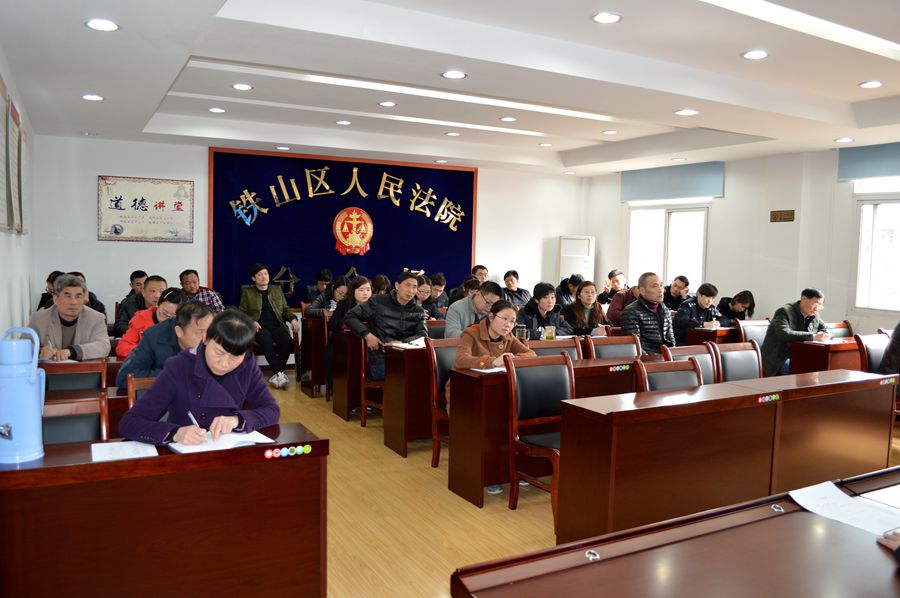 3月3日,铁山区人民法院召开全院干警大会,专题学习传达贯彻省、市、区委政法工作会议和全省法院院长会议精神,并通报专题民主生活会情况。会议由该院党组成员、执行局长熊曙光主持,该院全体干警及聘用人员参加了会议。