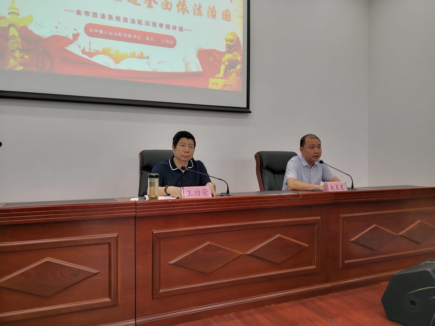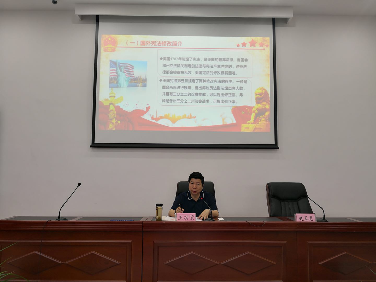 5月30日,市中院党组书记、院长王功荣同志为参加全市政法系统政治轮训班的同志,作了题为《以宪法实施推进全面依法治国》的专题讲座。