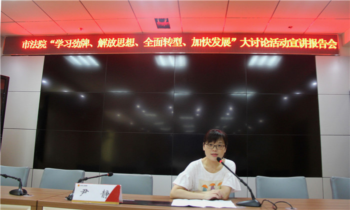 会上,大冶市委党校教务科副科长、理论教员尹静作了“解放思想求创新,抢抓机遇谋发展”主题宣讲。宣讲中,尹静教员首先剖析了历史上三次具有深远影响的思想解放运动,并分析解疑什么是解放思想,如何解放思想,对新形势下如何解放思想三个方面展开宣讲。同时,结合劲牌公司发展历程和改革创新的成功事例,总结经验提出了许多建设性的意见。该院参会人员表示,这次的宣讲活动很有意义,明确了解放思想的背景和意义,统一了法院干警的思想,为今后法院的发展起到了很好的促进作用。