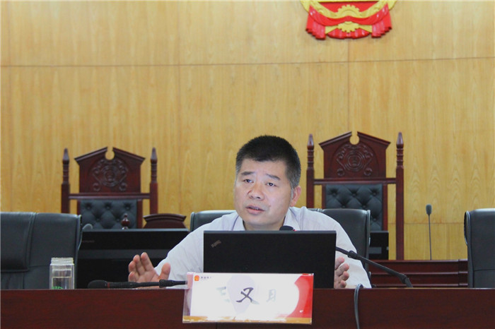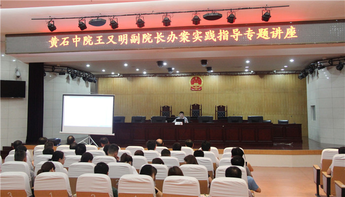 7月14日下午,市中院党组副书记、副院长王又明到大冶市人民法院,为该院全体一线法官和审判辅助人员开展专题讲座。王又明以办案方法为主题,首先阐述了裁判方法在审判实务中的重要意义,并与参会干警积极互动,交流大家知道的一些裁判方法,最后结合黄石本地实际,以案例教学的方式介绍了他自己归纳总结的“以争议问题基础法律规范为导向,结合演绎三段论”的裁判方法,为办案法官强化法治思维、提升办案能力、保证案件质量提供了有力帮助。