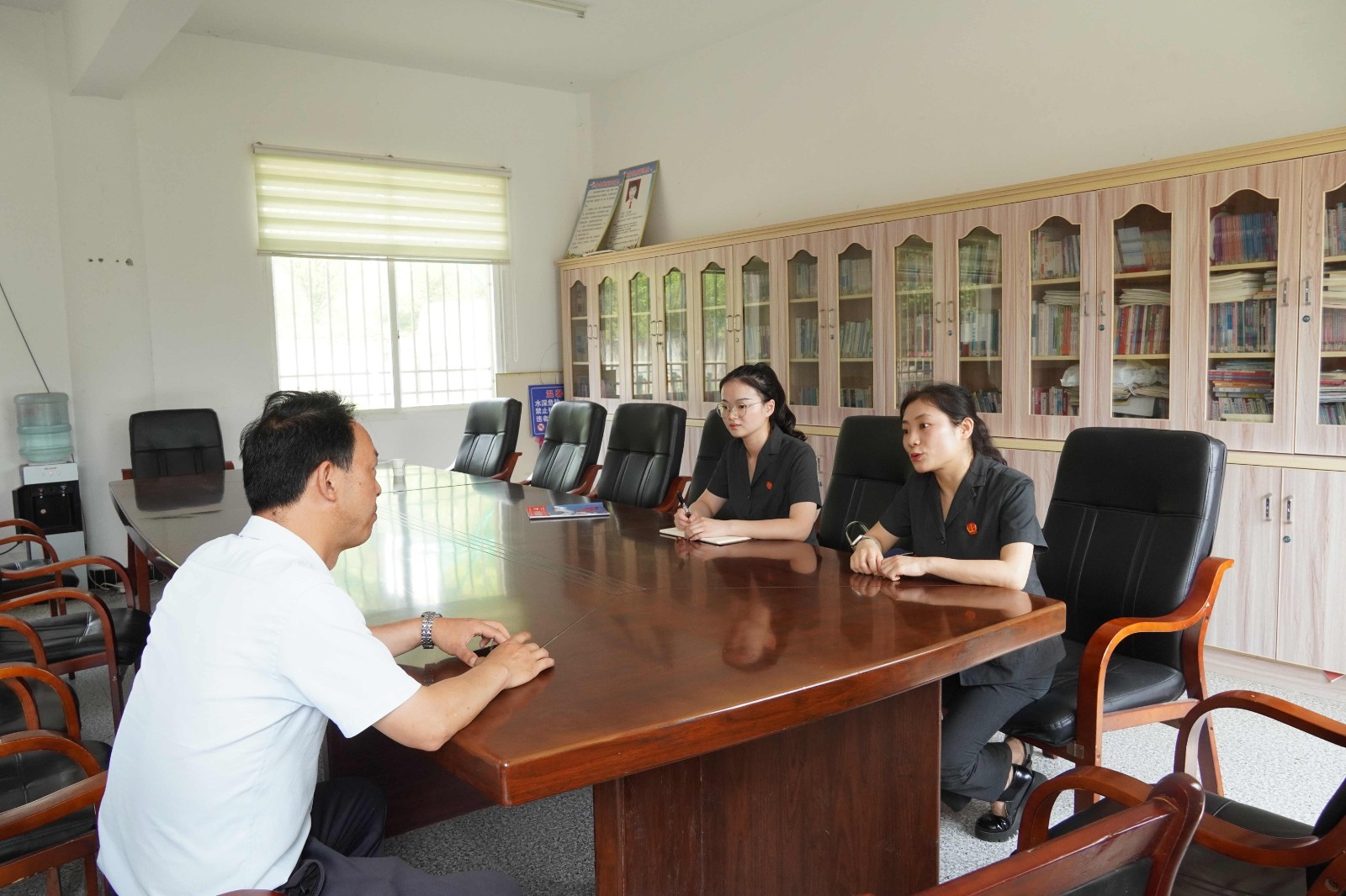 为妥善办理好该案,赵婧带领法官助理叶芸多次到该合作社所在地大冶市保安镇茶山村实地走访。因正直农忙时节,为不误农事,方便当事人诉讼,打通“诉讼最后一公里”,赵婧决定将法庭设在村委会。