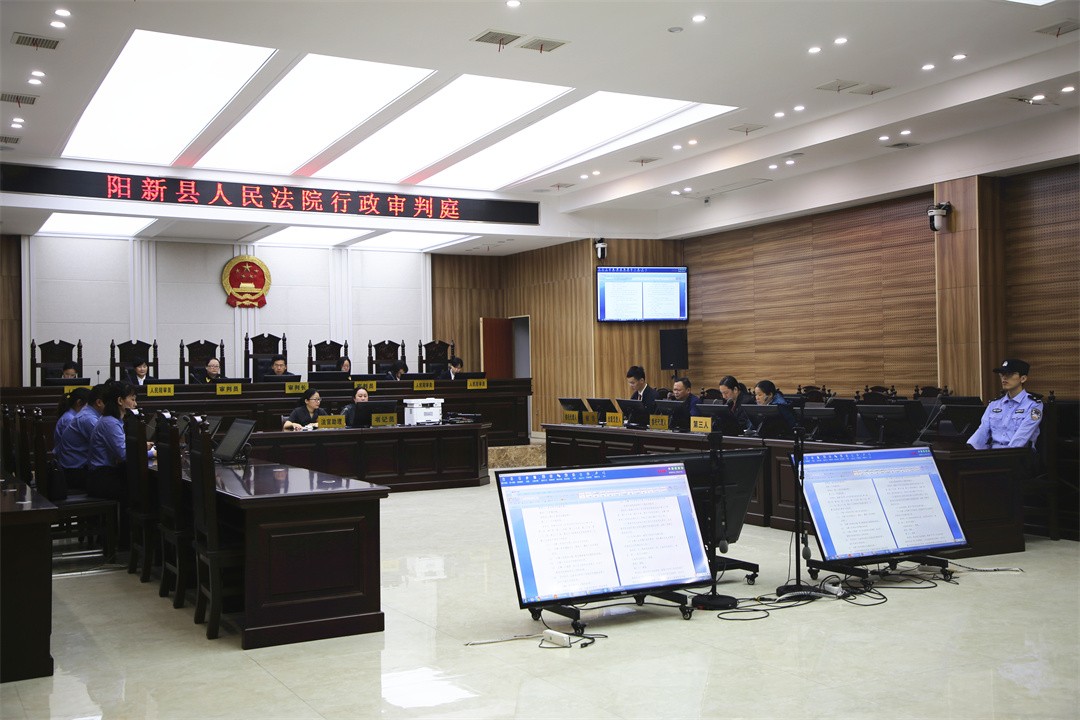 “阳新县人民法院现在开庭,根据《中华人民共和国行政诉讼法》......”法槌一声落下,阳新县法院大审判庭鸦雀无声,一场既具严肃性、又具规范性,既富责任感、又富紧迫感的行政审判正式开始。
