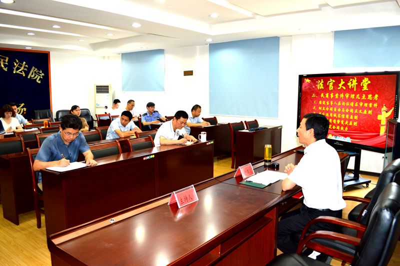 程琳以审理民商事案件几点思考为题,深刻分析了当前民商事审判中的热点难点问题,总结了民商事审判工作经验。同时,结合30多年的审判经验对“围绕当事人的诉讼请求审理案件”、“树立合同自由与合同正义原则”、“充分运用诚实信用原则”、“严格适用情势变更原则”、“审慎认定合同效力”等几个方面内容进行了深刻的讲解。整个授课理论联系实际,密切结合民商事诉讼实际情况,以小见大,内容丰富,语言生动,受到了干警的热烈欢迎。