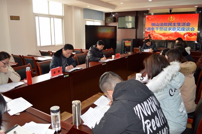 2018年2月1日,铁山法院召开民主生活会征求意见座谈会,与中层干部、青年干警及司机等临聘人员面对面交流,广泛听取他们对法院领导班子及班子成员的意见和建议。